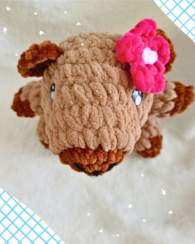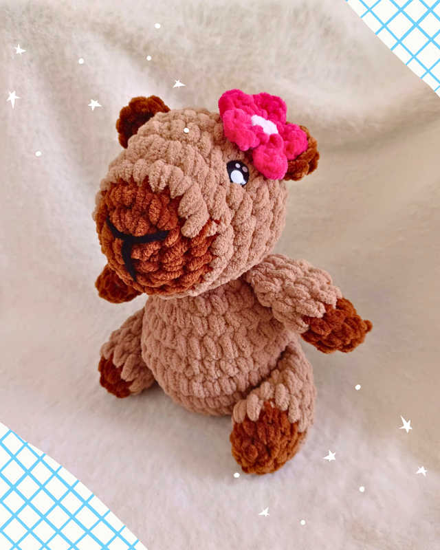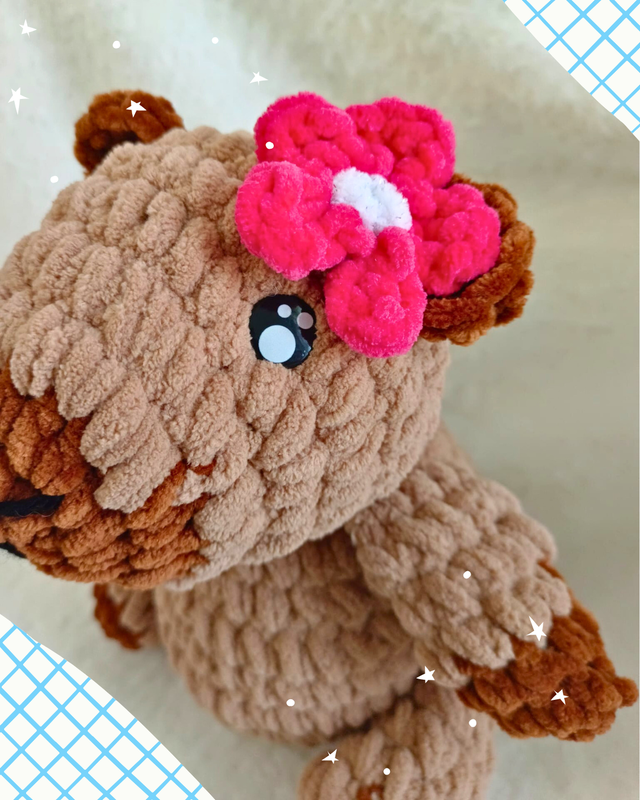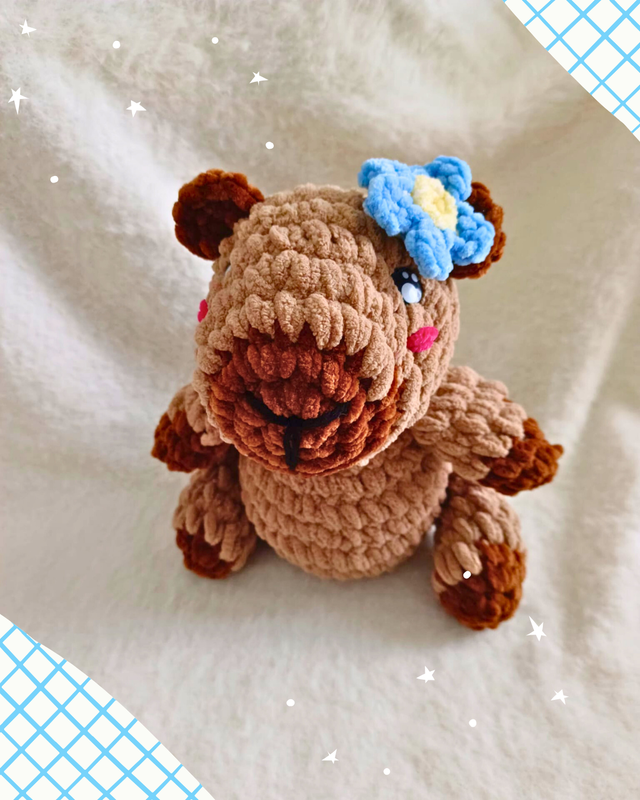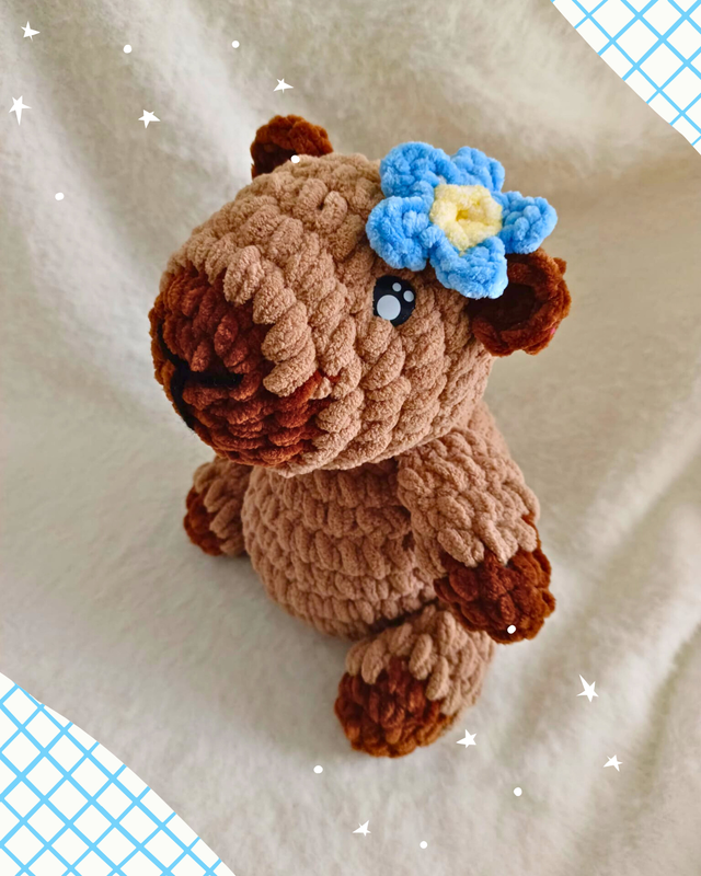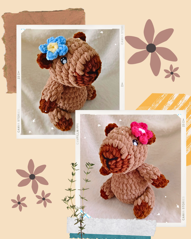 Introducing our handmade crochet capybara with a charming flower on its head, available in pink and blue. Made with super soft baby blanket yarn and filled with high-grade hypoallergenic stuffing, this adorable creature stands 25cm tall and is perfect for cuddles. A unique Christmas present that melts everyone's hearts, this bundle of joy takes 2 days to handcraft before being sent your way via royal mail, arriving in 3-5 business days. Bring home this lovable capybara today and experience the joy it brings to your life!