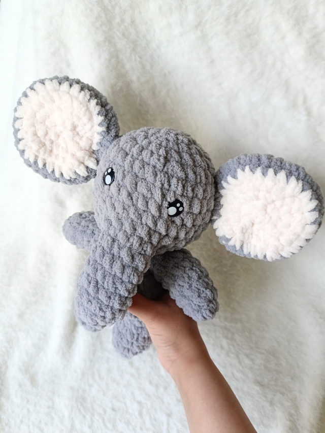 Our handmade crochet elephant toy is a soft and plush addition to any baby's nursery. Made with baby blackent yarn, this adorable toy is perfect for cuddling and play. You have the option to choose embroidery eyes over plastic for added safety. Custom colors are available to match any nursery decor. Simply message us via Insta or Facebook to personalize your order. This delightful elephant is the perfect gift for a new baby or a special addition to any toy collection. Get yours today and bring joy to your little one!