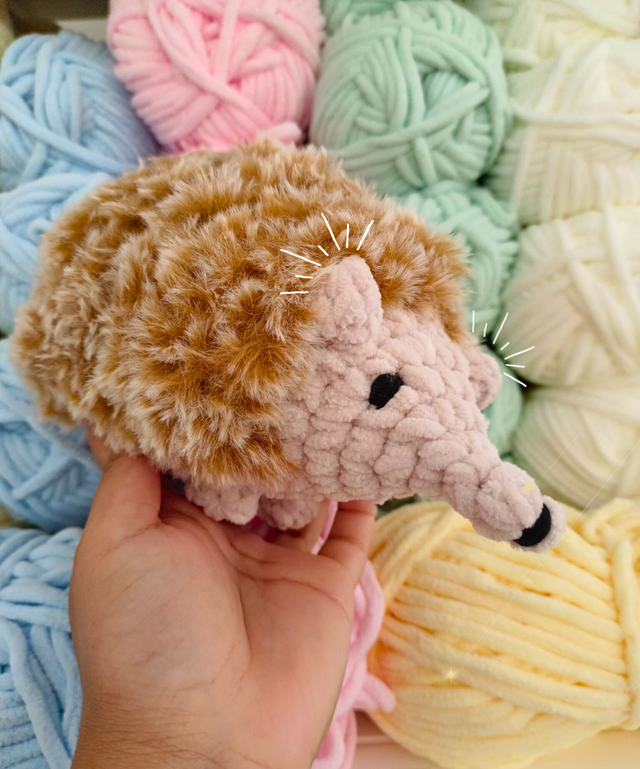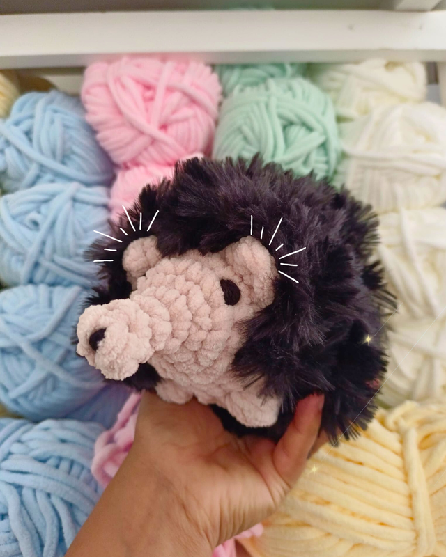 Introducing our handmade crochet hedgehog, crafted with fluffy super soft baby blanket yarn and fur yarn for ultimate cuddliness. Filled with hypoallergenic stuffing, this plush toy is perfect for snuggles without any irritation. Our attention to details shines through with intricate embroidery thread work, creating a unique and adorable design. This hedgehog is not only a charming addition to any nursery or playroom, but also a soft and comforting companion for all ages. Treat yourself or a loved one to this one-of-a-kind creation today.